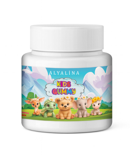 Alyalina Kids Gummy; C Vitamini (Askorbik Asit), Çinko, Kalsiyum, D3 Vitamini, Biotin, Retinol (A Vitamini) ve Pancar kökü özü içeren, tamamen çocuklara özel formüle edilmiş jelibon tarzı bir multivitamindir. 🍓